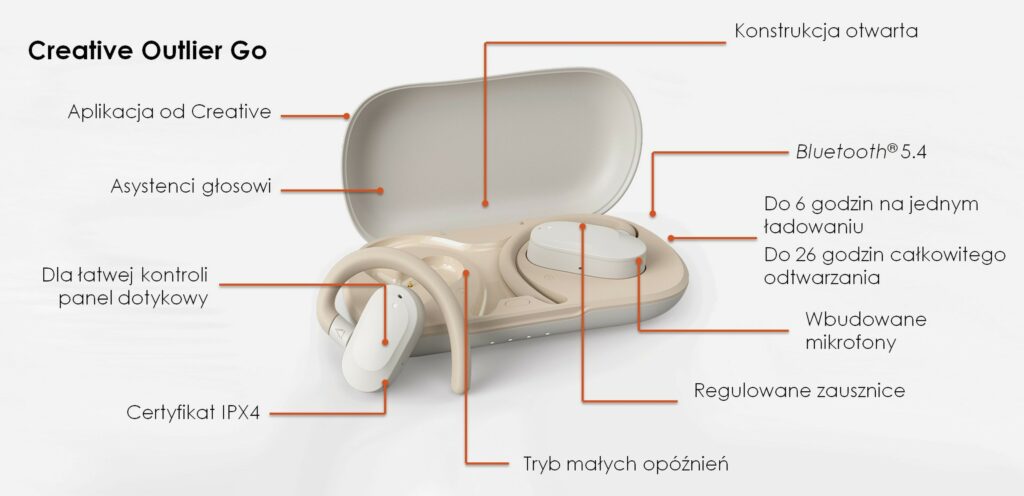 Creative Outlier Go to bezprzewodowe słuchawki typu open-ear, Tego typu konstrukcja jest przydatna podczas ruchu w mieście, treningu na zewnątrz czy w sytuacjach, gdy wciąż trzeba słyszeć sygnały z otoczenia, a jednocześnie korzystać z muzyki, podcastów czy rozmów. Słuchawki kierowane są więc do osób aktywnych i miejskich użytkowników, którzy oczekują jednocześnie pewności, wygody i solidnej jakości brzmienia. Creative zadbało o to, aby dźwięk skierowany był precyzyjnie w stronę kanału słuchowego, minimalizując straty energii akustycznej i zachowując pełnię detali. Zastosowanie otwartej konstrukcji akustycznej pozwala zachować naturalną percepcję dźwięków otoczenia, co istotnie zwiększa bezpieczeństwo w przestrzeni miejskiej. Producent zadbał również o personalizację wyglądu słuchawek i stworzył dwie wersje kolorystyczne. Creative Outlier Go kosztują 269.99zł w mediaexpert.pl.