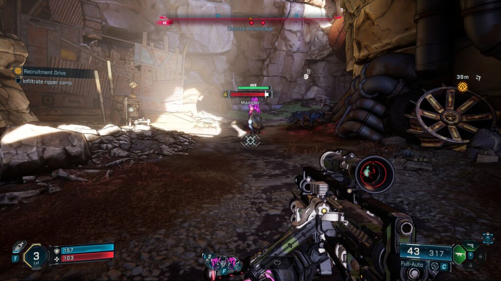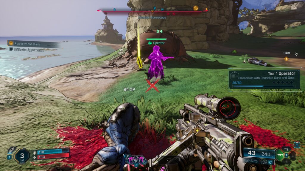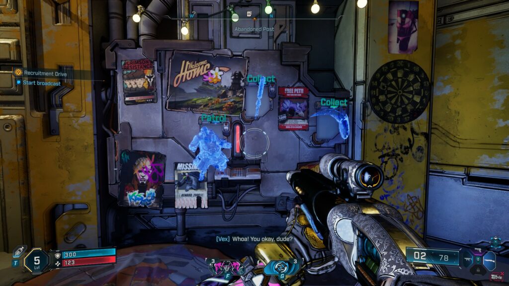 Fabuła w grze jest porządna. Timekeeper to nie Handsome Jack, ale jest nieźle nakreślony. Historia jest raczej przewidywalna i wielkich zaskoczeń nie ma, ale jest napisana poprawnie i nie czułem zażenowania słuchając dialogów, czy zagłębiając się w historię. Oczywiście obok zadań związanych z główną fabułą, mamy całą masę misji pobocznych, które znajdziemy rozsiane po świecie, a także multum kontraktów, które możemy przyjmować w bazach. Wszystko to jest oczywiście źródłem punktów doświadczenia, kasy, sprzętu i możliwości rozwoju naszej postaci.