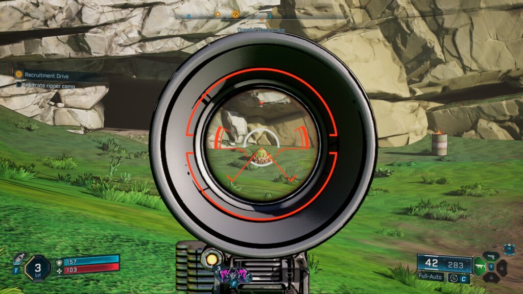 No dobra, a jak jest z „shooterem”. Nie narzekam. Przyznam, że musiałem się trochę przyzwyczaić do tego jak zachowuje się broń, jak strzela i tak dalej. Ostatnie dwa lata spędziłem w Destiny 2, a co by o tej grze nie mówić, to Bungie jest znane z dobrego gunplay’u i przesiadka z tej gry na inny FPS zawsze jest ciężka. Niemniej jednak tranzycja nie była męczarnią. Jasne, gunplay nie jest dla mnie tak świetny jak ten z Destiny 2, ale niewiele mu ustępuje. Dziwiły mnie, co prawda i drażniły niektóre rozwiązania, jak na przykład Order Auto Rifle, który nie strzela normalnie serią, jak można by się po karabinie spodziewać, tylko ładuje się po naciśnięciu i przytrzymaniu spustu, aby po puszczeniu go wystrzelić serię pocisków. Bardziej to przypominało karabin pulsacyjny niż automatyczny, ale dało się do tego przyzwyczaić. Niektóre karabiny snajperskie też nie miały „feelingu” snajperek, tylko wolno strzelających zwykłych karabinów, ale też nie było takich przypadków zbyt wiele. Każdy producent broni jak już napisałem ma swoje mniejsze i większe umiejki w sprzęcie, co też zmienia odczucia płynące z używania broni. Różne typy obrażeń mają znaczenie (zwłaszcza na wyższym poziomie trudności), bo odpowiednie ich dopasowanie do wroga, na bazie koloru jego paska zdrowia pozwoli szybciej go ubić.