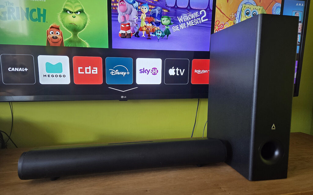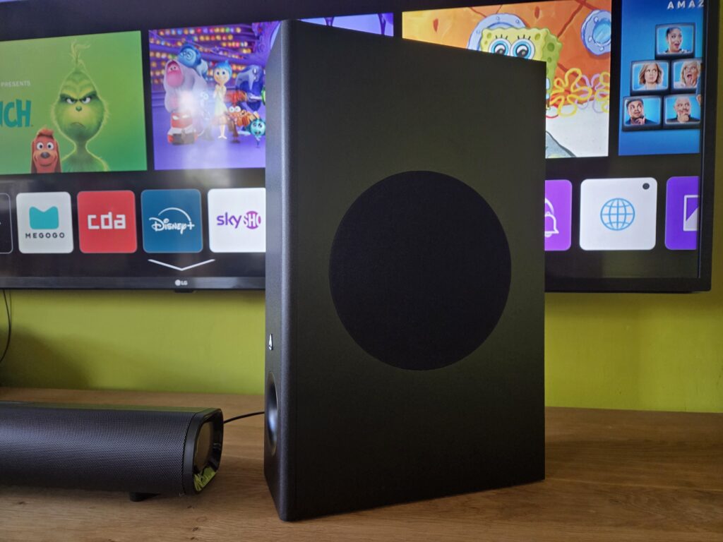 Subwoofer zapewnia mocny, głęboki bas, co jest dobrze słyszalne w filmach akcji i muzyce z mocnym rytmem. Natomiast w grach tworzy niepowtarzalny klimat, szczególnie w mrocznych lokacjach, gdzie potrafi wywołać gęsią skórkę. Dialogi (tutaj Dolby Audio robi dobrą robotę) są czyste i klarowne, nie są tłumione przez dźwięki otoczenia. Dźwięk jest przedstawiany w taki sposób, aby nie wywołać u słuchacza wrażenia bałaganu czy kakofonii – całość brzmi spójnie. Szczegółowość w tej cenie naprawdę robi wrażenie. A dzięki technologii SuperWide scena dźwiękowa jest znacznie poszerzona, dając wrażenie głębi i naturalności, co słychać zarówno w filmach, jak i grach. Listwa bez problemu mieści się pod TV czy monitorem, a najlepiej sprawdza się w pomieszczeniach do 16m². Dzięki trybom dźwięku Near Field i Far Field można skutecznie dostosować brzmienie do odległości słuchacza. Osoby, które oglądają dużo treści z YouTube, będą zadowolone z Dolby Audio, dzięki której dialogi stają się bardziej klarowne.