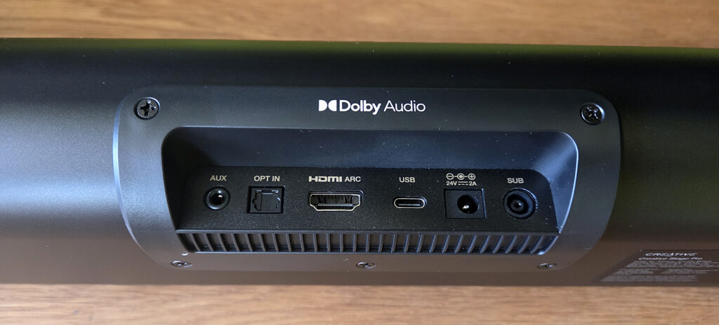 Ci, którzy planują podłączyć Stage Pro do telewizora, powinni być zadowoleni z wejścia HDMI ARC (z CEC), które umożliwia sterowanie soundbarem pilotem od telewizora. Jest to bardzo wygodne podczas grania na konsoli czy oglądania filmów. Dodatkowo soundbar posiada wejście USB-C, które z pewnością znajdzie zastosowanie wśród użytkowników komputerów stacjonarnych i laptopów. Dzięki Bluetooth 5.3 można połączyć się z telefonem, tabletem czy laptopem. Ostatnim wejściem jest klasyczne wejście optyczne.