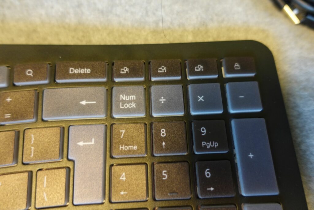 Po pierwsze dwa słowa o bezprzewodowości. Klawiatura działa w dwóch trybach. Radiowo 2,4 GHz (ten tryb wymaga podłączenia załączonego w zestawie dongla – a jak go nie podłączamy, można go schować w klawiaturze), oraz w trybie BlueTooth 5.2. Co więcej można z uwagi na to, że klawiatura ma dwa moduły BT, można ją tak naprawdę sparować z trzema urządzeniami – dwa po BT i jedno donglem. Przełączamy się szybko i łatwo klawiszami nad blokiem numerycznym.